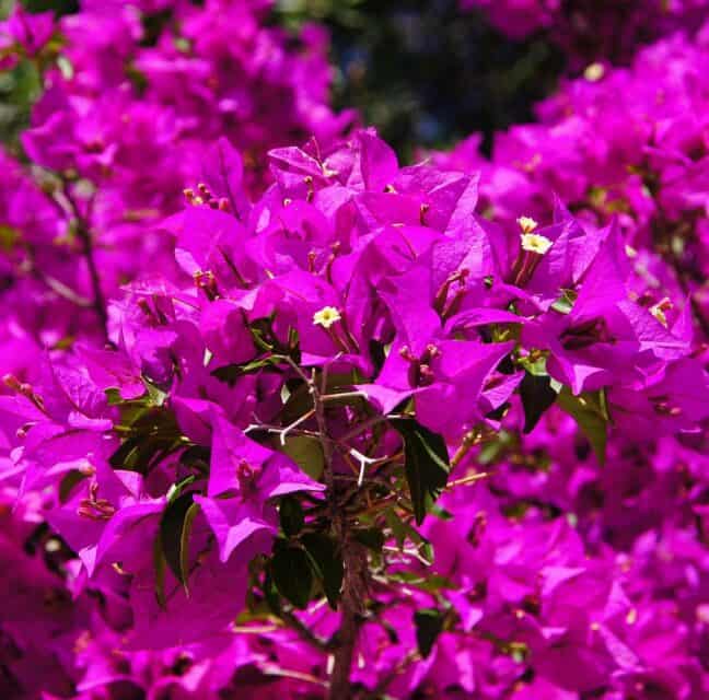 Bougainvilleas love the sun and favor dry conditions. Thus, the winter months in Verandah are ideal for growing “Bougies.” The best time to prune Bougainvillea is after it flowers in late winter or early spring. When pruning, wear protective gloves and proceed with care! Bougainvilleas are very thorny, particularly the larger variety. Smaller cultivars have been bred to be less thorny. You can fertilize at the end of their bloom cycle with high phosphorus fertilizer to promote flowering.
