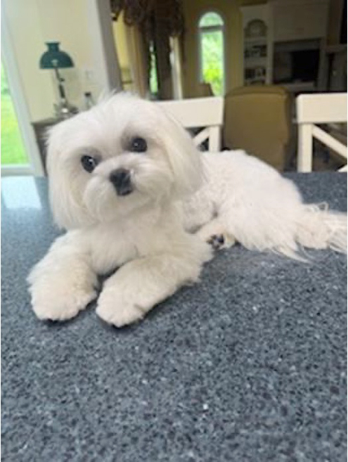 Glory Be and Goodness Gracious! Glory B, a 2 1/2-year-old Maltese, weighs in at a whopping 4.2 pounds. She may be the smallest dog in Verandah! Glory B loves her dad Mike, and Nancy plays second fiddle but Glory B manages to give lots of lap time to both! Glory has lots of toys and scatters them all over the house and never picks up after herself! She loves and expects treats, going for walks and especially car rides. Glory B has champion parents and a long pedigree; however, that was never important to Nancy and Mike Mitchell. This little miss has all the characteristics of the Maltese breed in that she is cuddly with a sweet disposition, hypoallergenic, and not to mention absolutely adorable! She has Nancy and Mike wrapped around her paws, and they love it!