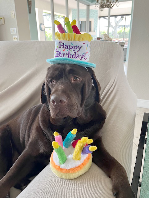 Meet Duke who is a 4/1/2-year-old handsome Chocolate Lab weighing in at 115 pounds of love, cuddles and charm. If Duke is not lounging around the house, he is busy at work. As a certified therapy dog, Duke has brought love, joy and laughter to hundreds of children this past year in schools and libraries. Just imagine cozying up to him as you read a story. He will melt your heart! Duke recently continued that charm by greeting children arriving for Verandah’s Santa Brunch. Duke lives on Sanctuary Point with his certified handlers and loving dog parents, Bob and Cheryl Scheidet. Duke loves his walks (and treats) so, if you see him out walking, stop a minute and enjoy some of his sweetness.